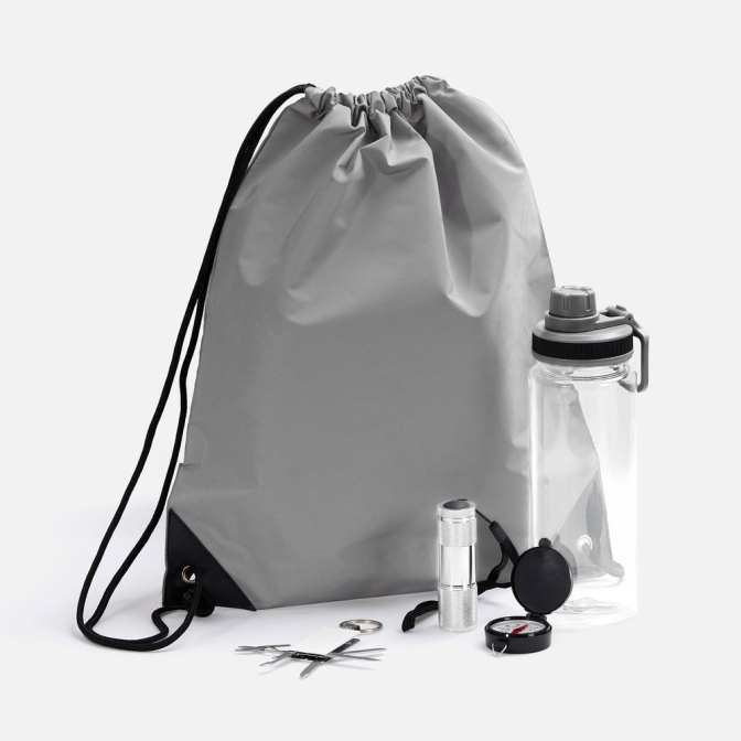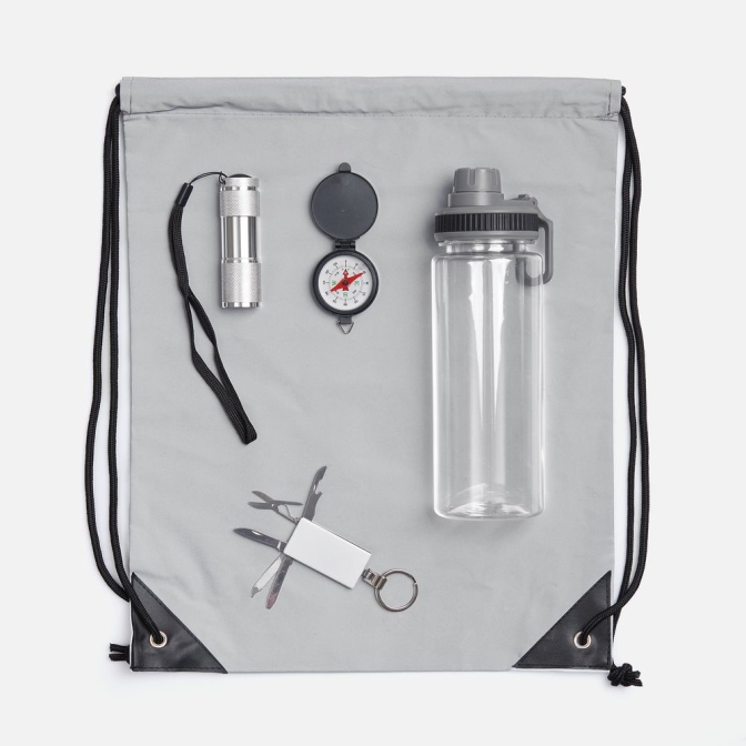Набор Manifestour — практически survival kit для вылазки на природу! Входящие в состав брелок-мультитул, компас, бутылка для воды и фонарик — незаменимые вещи в любом путешествии, а благодаря рюкзаку из светоотражающей ткани вас будет легко заметить в темное время суток.Manifestour. Уверенный манифест продуманного туриста.Объем рюкзака 10 л.Емкость бутылки 700 мл.