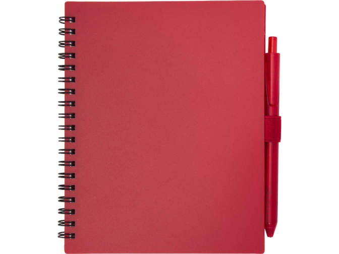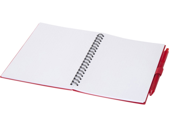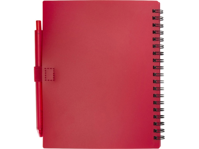 Блокнот Niove с мягкой обложкой изготовлен из переработанной пластмассы, имеет 70 нелинованных листов из бумаги плотностью 70 г/м². Блокнот имеет квадратные углы и петлю для ручки. Размер блокнота: 140 х 178 мм. Шариковая ручка также изготовлена из переработанной пластмассы. Цвет чернил: синий. Длина непрерывной линии: 1000 метров. Диаметр пишущего узла: 1,0 мм.