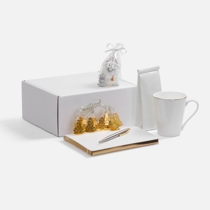 Поэтика праздника складывается из приятных и важных мелочей. В наборе «Планы на счастье» все подчинено одному замыслу — нести свет, радость и конечно же, пользу в преддверии самого волшебного времени года.В новогодней суете порой хочется замедлиться и ненадолго выдохнуть, чтобы подумать о главном и настроиться на будущие свершения. «Планы на счастье» — это тот настрой, с которым нужно входить в грядущий год, с уверенностью и теплом в душе. Для этого достаточно лишь расслабиться за чашечкой ароматного чая и записать все ценные мысли в стильный ежедневник. А за создание атмосферы и праздничное мерцание ответят милая гирлянда в виде елочек и свечка-невеличка. «Планы на счастье». Загадывая самое лучшее.