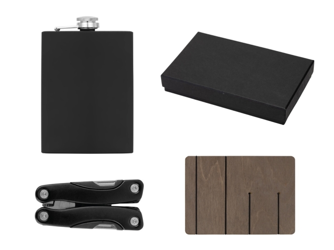 Подарочный набор Путешественник 2.0. Хит среди наборов для туризма снова в нашем ассортименте! В набор входят мультиинструмент и фляжка, которые пригодятся как в городе, так и на природе. Универсальный инструмент поможет при поломке автомобиля на трассе, для мелкого ремонта и пригодится в походе. Небольшой размер и малый вес позволяют носить его на ремне брюк. Фляжка с приятным на ощупь покрытием soft-touch выполнена из качественной нержавеющей стали. Персонализировать фляжку можно с использованием гравировки и УФ-печати. - практичный набор для похода; - мультиинструмент в индивидуальном чехле; - объём фляжки: 240 мл; - подарочная коробка с деревянным ложементом в комплекте.