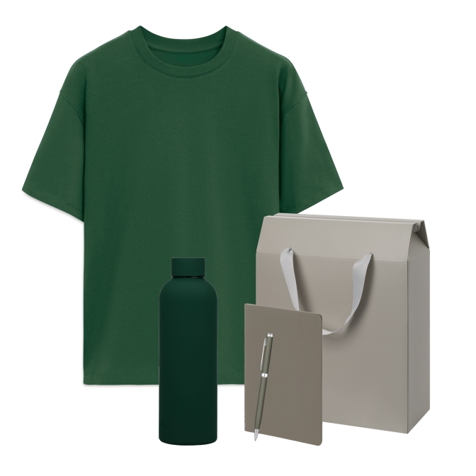 Набор с одеждой RUST (футболка, термобутылка, блокнот, ручка), зеленый/серый, XS/S