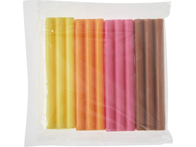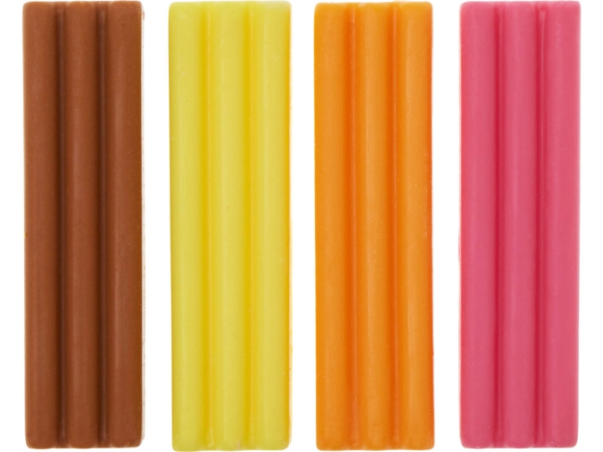 Яркие и необычные конфеты в форме, напоминающей пластилин, создают праздничное настроение и радуют глаз. Изготовлены из качественных ингредиентов. В каждом наборе — 4 ярких вкуса: банан, апельсин, малина и солёная карамель!