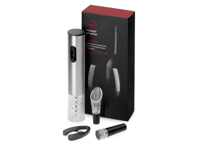 Комплектность: электрический штопор, вакуумная пробка, аэратор, нож для фольги.