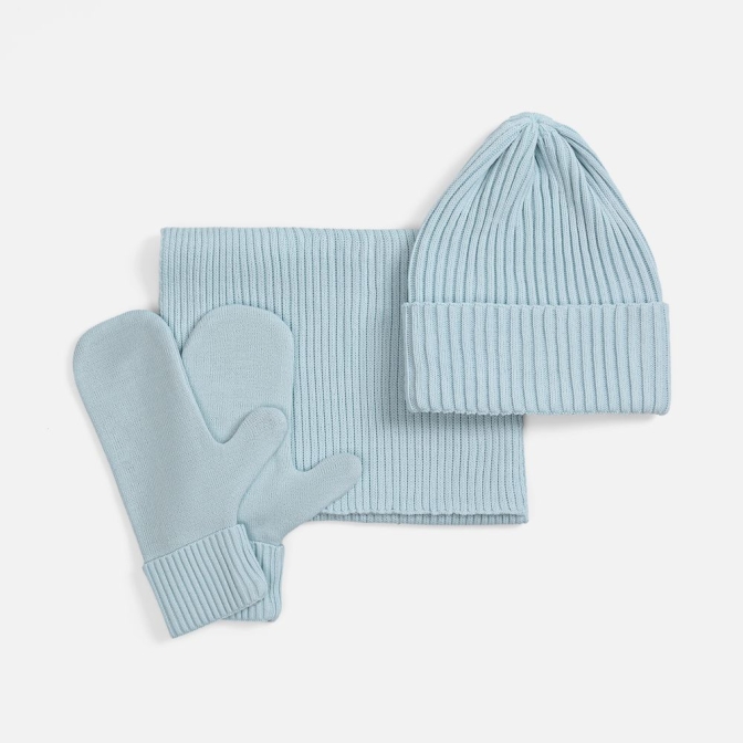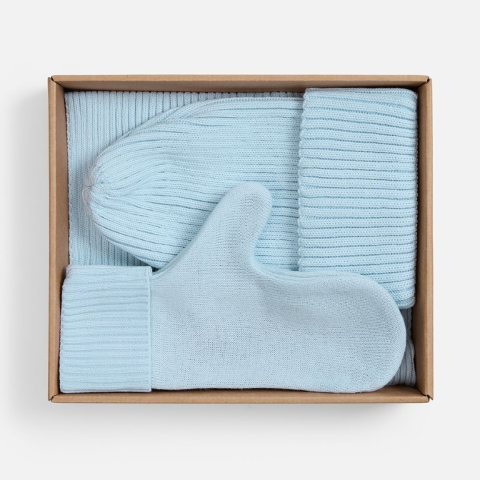 Набор Yong из трех предметов для максимального тепла и комфорта в холодное время года. В набор входит удобный шарф с технологичным отверстием для быстрого завязывания, шапка с двойным отворотом и теплые двухслойные варежки с широкой манжетой. Все изделия связаны из акриловой пряжи, отличаются практичностью и элегантной простотой. Набор упакован в подарочную картонную коробку.