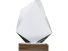 Награда выполнена из прозрачного стекла, имеет интересную асимметричную форму и расположена на деревянном постаменте.