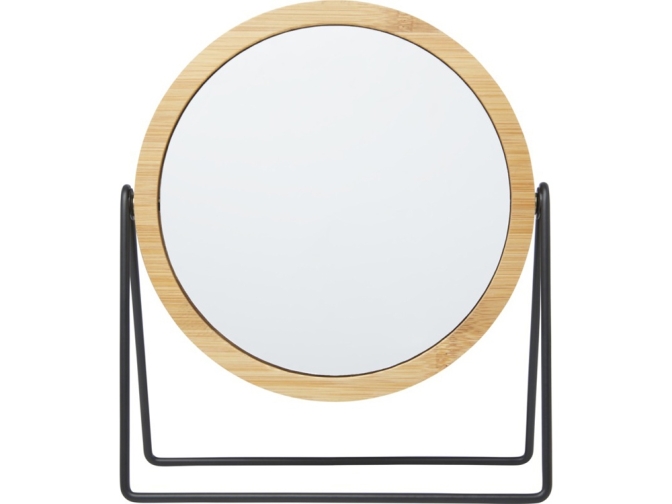 Двустороннее зеркало, вращающееся на 360 градусов, которое можно разместить на туалетном столике или другой горизонтальной поверхности. Зеркало выполнено из бамбука, который добывается и производится в соответствии с требованиями стандартов устойчивого развития.