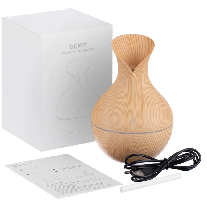 Настольный увлажнитель воздуха Dewy насыщает влагой воздух в помещении, обеспечивая комфортную и здоровую среду в течение всего рабочего дня. Благодаря компактному размеру его легко разместить на рабочем столе.Мягкая переливающаяся светодиодная подсветка ободка и отделка корпуса, стилизованная под натуральный бамбук, позволяет использовать его еще и как элемент декора.Для ароматизации можно добавить раствор на водной основе или ароматическое масло. Увлажнение воздухаРазноцветная подсветка ободкаВозможность добавлять аромамаслаЕмкость 130 млЗапаса воды в резервуаре хватает примерно на 4 часа Рабочее напряжение 5 ВРабочий ток 500 мАПотребляемая мощность 2 ВтКомпактный размерРаботает только при подключении к источнику питанияПоставляется в индивидуальной упаковке. Перед началом использования следует обязательно размочить хлопковый фильтр в воде с двух сторон.