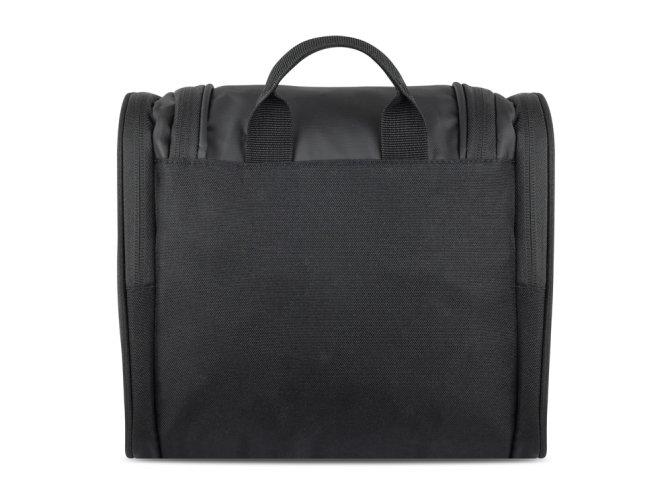 Функциональная организация: основное отделение на молнии с 3 сетчатыми карманами, сетчатое отделение на молнии, прозрачное отделение на молнии, крючок для подвешивания, 2 боковых отделения на молнии, передний карман на молнии, ручка.