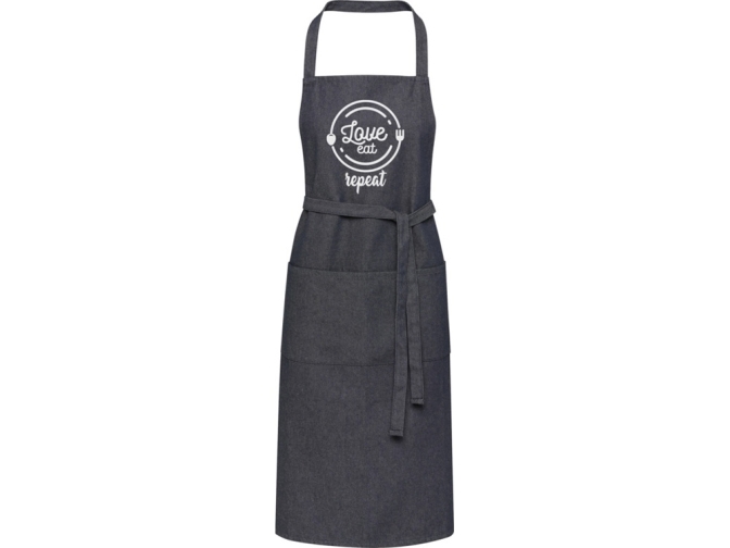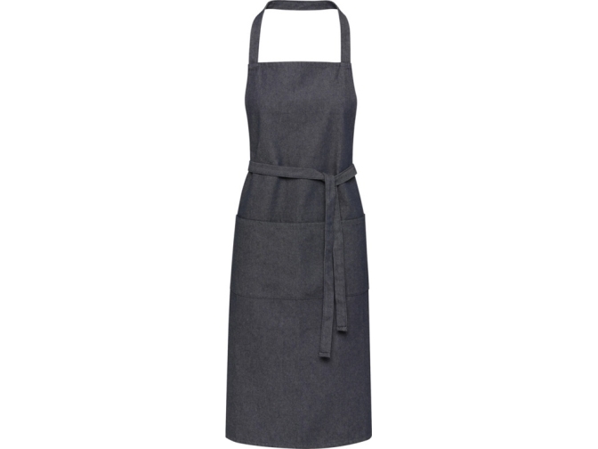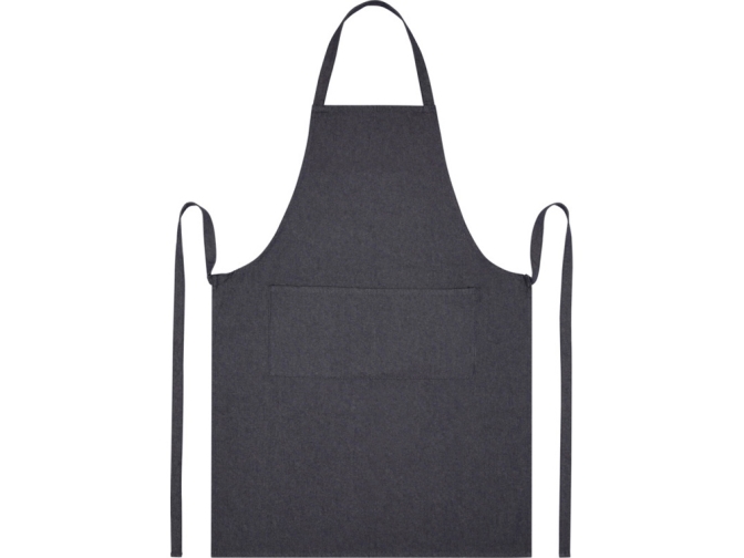 Фартук Nima изготовлен из 70 % переработанного хлопка плотностью 320 г/м² и 30 % переработанного полиэстера, что делает его плотным, прочным и удобным в носке. Имеет два смежных кармана общим размером 22 x 20 см и завязку на спине длиной 1 метр. Данный фартук также оснащен индикатором Aware™. Эта инновационная функция позволяет пользователям отслеживать происхождение и путь своего товара с помощью QR-кода, повышая прозрачность цепочки поставок и способствуя более прочной связи между продуктом и процессом его производства. 70% Recycled cotton, 30% Переработанный Полиэстер, 320 g/m2.