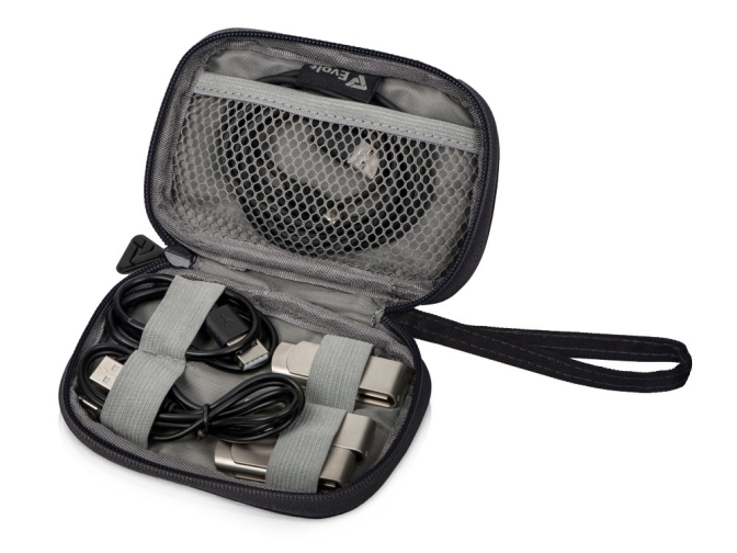 • Сетчатый карман и отсеки на резинке позволяют аккуратно распределить провода так, чтобы они не спутывались и были легкодоступны в любой момент