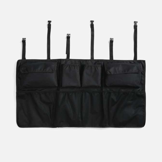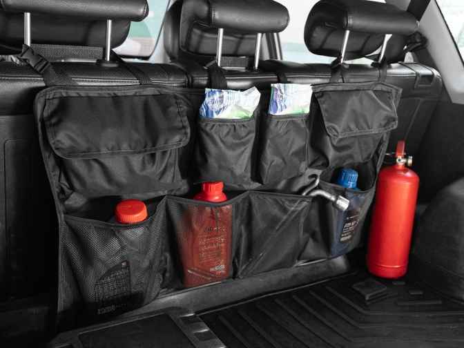 Органайзер Ordinare поможет навести порядок в багажнике, освободить место в салоне и избавиться от вечно катающихся в машине предметов. В органайзере имеются разные по форме и типу карманы: карманы-сетки, карманы с крышкой на липучке и открытые карманы. Конструкция крепится ремнями за подголовники задних сидений. Дополнительно на его задней части имеются ленты-липучки, которые обеспечивают полное прилегание к спинкам задних кресел.Подходит для автомобилей типа универсал, хэтчбэк и кроссовер.