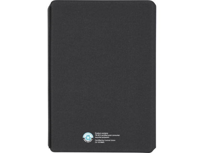 Папка-органайзер Notu, сертифицированная RCS, частично изготовлена из переработанного полиэстера, бывшего в употреблении, что делает данную папку-органайзер более экологичным выбором, поскольку помогает сократить использование первичного сырья. Имеет магнитную застежку, карман-гармошку и 64 листа в линейку кремового цвета из переработанной бумаги плотностью 80 г/м² из экологически чистых источников. FSC certified paper. FSC Mix Credit P7 CU-COC-877277.