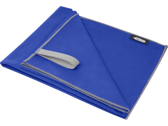 Это спортивное полотенце очень хорошо впитывает влагу, легкое, быстро сохнет. Кроме того, ткань прочная и чрезвычайно мягкая. Когда полотенце сложено и закреплено резинкой, оно уменьшается до небольшого размера, поэтому его удобно брать с собой в тренажерный зал, бассейн, на пешую прогулку или в поход. Полотенце имеет размер 130 x 80 см и изготовлено из переработанного РЕТ-полиамида плотностью 200 г/м2, его можно стирать в стиральной машине при 40 °C. Поставляется с сумкой для хранения (20 x 8,5 см) из переработанного РЕТ-пластика, на которой достаточно места для нанесения логотипа.
