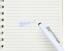 Пластиковая шариковая ручка со стирающимися чернилами. Синие чернила стираются с помощью ластика в верхней части ручки.