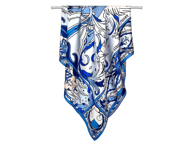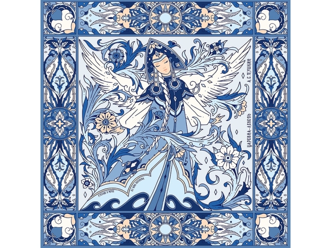 Дизайнерский платок Царевна Лебедь от Нины Ручкиной стал воплощением сказочного персонажа, прославленного великим и талантливым романтиком и поэтом — А. С. Пушкиным. Именно он впервые подарил нам образцы художественной русской эстетики, исходящей из самой глубины русской души.