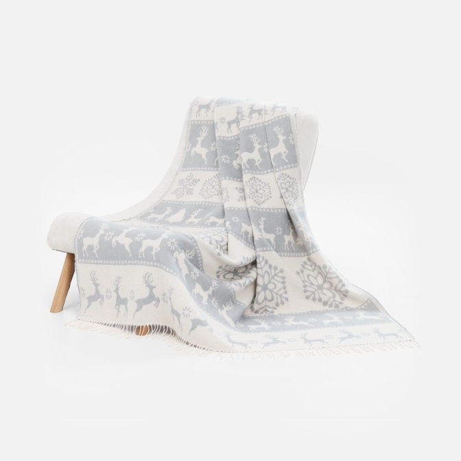 Плед «Скандинавия» — воплощение уюта и тепла в каждой нити, создан для тех, кто ценит качество и любит окружать себя красивыми вещами.Уникальный жаккардовый рисунок с изображением грациозных оленей и изящных снежинок перенесет вас в мир северной сказки. Каждый элемент рисунка тщательно проработан и создает неповторимую атмосферу зимнего волшебства.Скандинавия. Тепло и очарование севера.