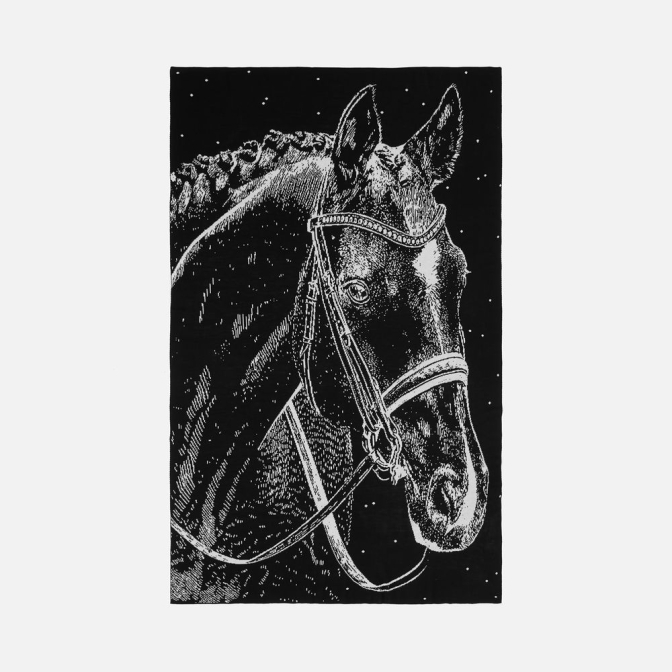 Плед «Вороной» погружает в атмосферу аристократического уюта — для особого настроения и легкой торжественности новогодних праздников.Черно-белое исполнение в узнаваемом стиле старинной гравюры моментально переносит в мир былин и сказаний, напоминая о том, что с давних времен лошадь — верный друг и защитник человека, доблестный и величественный. Конь подобной масти символизирует мудрость и благородство, а также гармоничное сочетание силы и грации.Поставляется в пакете с липким краем.
