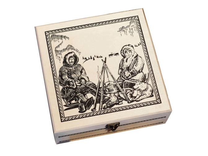 Чайный набор Сокровища Севера посвящён коренным малочисленным народам Севера, Сибири и Дальнего Востока России, на чьих исконных землях и добывается то, что делает нашу страну сильнее и богаче. Чаепитие – начало диалога. Поэтому давайте выпьем чая и немного поговорим об этом! Давайте с вниманием и интересом посмотрим на уникальный быт, костюмы и языки коренных народов, которые уже самим фактом своего существования вносят неоценимый вклад в этническое и культурное разнообразие России. Умный интеллигентный подарок для друзей, коллег, партнёров; оригинальный сувенир из России для иностранцев; небанальный подарок руководителю; презент для учителей, врачей и т.д.; вкусный чай для личного потребления. Состав: Чайный напиток по-саамски: чага, чёрный чай, лист брусники, корень ангелики. Чайный напиток по-чукотски: стебли шикши, листья брусники, багульник. Чайный напиток по-хантыйски: иван-чай, шиповник, цветы таволги. Чайный напиток по-юкагирски: иван-чай, чабрец, змееголовик, чёрная смородина. Чайный напиток по-ненецки: багульник, шиповник, листья брусники, чага. Чайный напиток по-корякски: иван-чай, таволга, облепиха, родиола розовая. Чайный напиток по-нанайски: лоза и ягоды лимонника дальневосточного, чай зелёный. Чайный напиток по-нивхски: лист ореха маньчжурского, мята, лист брусники, лист чёрной смородины. Чайный напиток по-эвенкийски: чёрный чай, чабрец, иван-чай, ягоды можжевельника. Не содержит ГМО, ароматизаторов, вкусовых добавок. Полностью натуральный продукт.