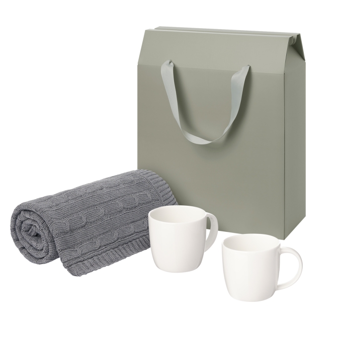 Подарочный набор Dafna, Fado, серый в коробке-пакете (две фарфоровых кружки, плед)