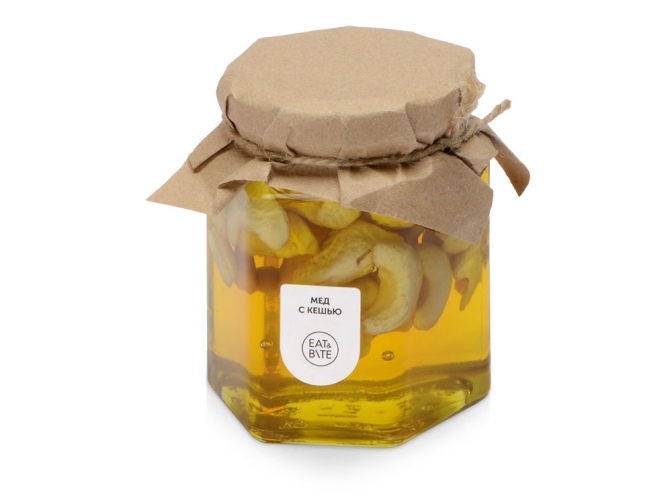 Комплектность: мед с миндалем 250 г, мед с кешью 250 г, подвеска избушка 6 х 6 х 9 см, подвеска елка 6 х 6 х 8 см.