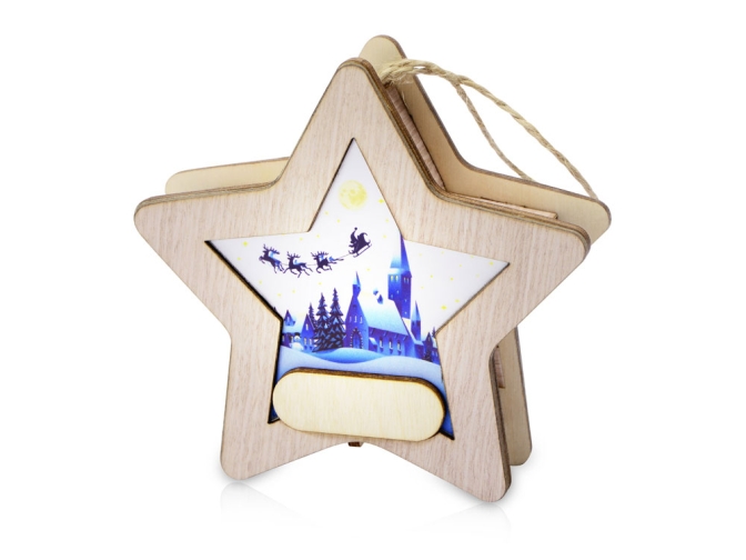 Комплектность: мед с миндалем 250 г, мед с кешью 250 г, подвеска звезда с подсветкой 10,5 х 10,1 х 2,9 см, подвеска елка 6 х 6 х 8 см.