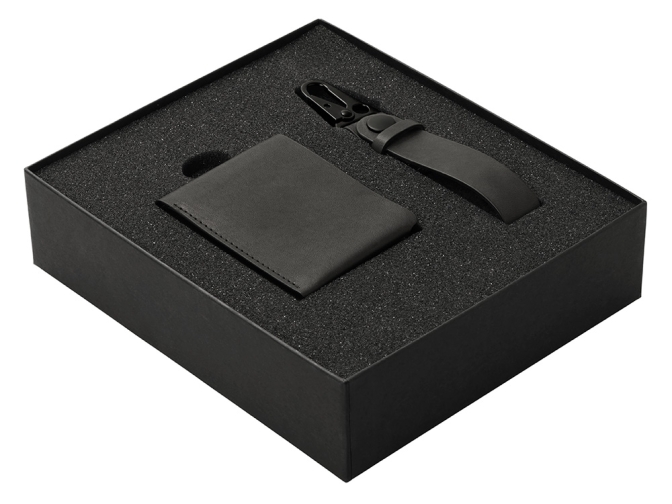 Идеальный дуэт для тех, кто ценит компактность и функциональность. Два аксессуара, которые освободят ваши карманы от громоздких вещей. Складной бумажник Маккензи: Невероятно тонкий, но вместительный. Внутри — три отделения для купюр любого формата (включая евро) и нескольких карт. Сшит вручную из качественной кожи, совершенно не ощущается в кармане. Ключный ремешок Ориноко: Простое и гениальное решение для ключей. Прочный черный кожаный ремешок с надежным карабином, который невозможно расстегнуть случайно. Крепится к шлевке или ремню — ключи всегда под рукой и не потеряются. Комплектация: складной бумажник, ключный ремешок с карабином. Упаковка: Стильная коробка из переплетного картона, готовая к персонализации.