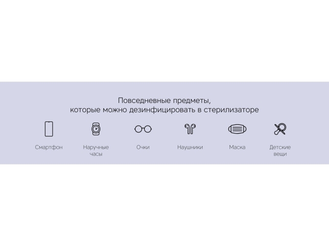 Комплектность: стерилизатор, кабель micro-usb, инструкция.