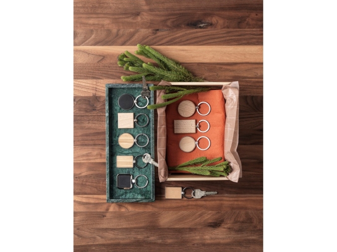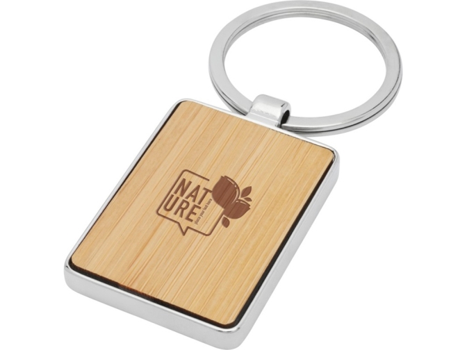 Прямоугольный брелок премиум-качества из бамбука с металлическим корпусом из цинкового сплава, поставляемый в коричневой упаковке из шрифтовой бумаги. Размер 3 х 4 см. Пригоден для лазерной гравировки.