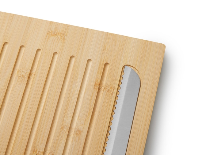 Доска Круста с хлебным ножом — идеальный дуэт для нарезки хлеба. На поверхности доски предусмотрены специальные выемки для сбора крошек, что делает нарезку удобнее, сохраняя поверхность вокруг идеально чистой. Нож удобно хранится прямо в доске: для него вырезано аккуратное посадочное место, чтобы инструмент был всегда под рукой. В углу доски предусмотрена специальная зона для нанесения логотипа — это делает набор идеальным корпоративным подарком. Бамбук — легкий, прочный и экологичный материал, который не впитывает запахи. Не рекомендуется использовать в посудомоечной машине. После мытья рекомендуем протирать деревянную поверхность насухо.