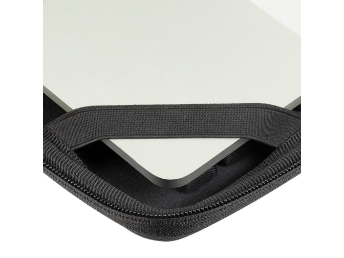 • Ноутбук надежно крепится внутри чехла специальными фиксирующими лентами по углам.