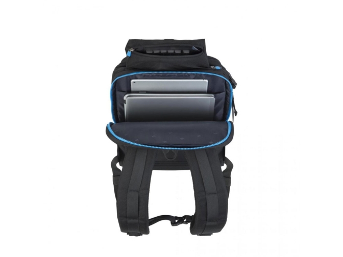 • Просторная секция на молнии для хранения всех необходимых игровых аксессуаров - наушники, мышь, коврик, полноразмерная клавиатура.