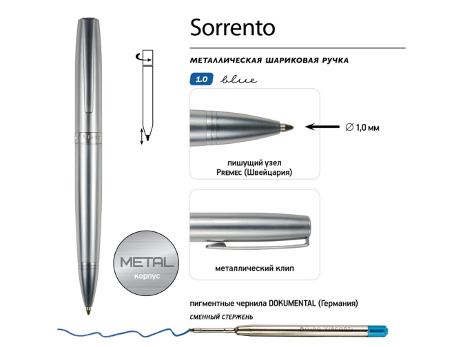 Роскошная металлическая шариковая ручка с синими чернилами из коллекции Sorrento.