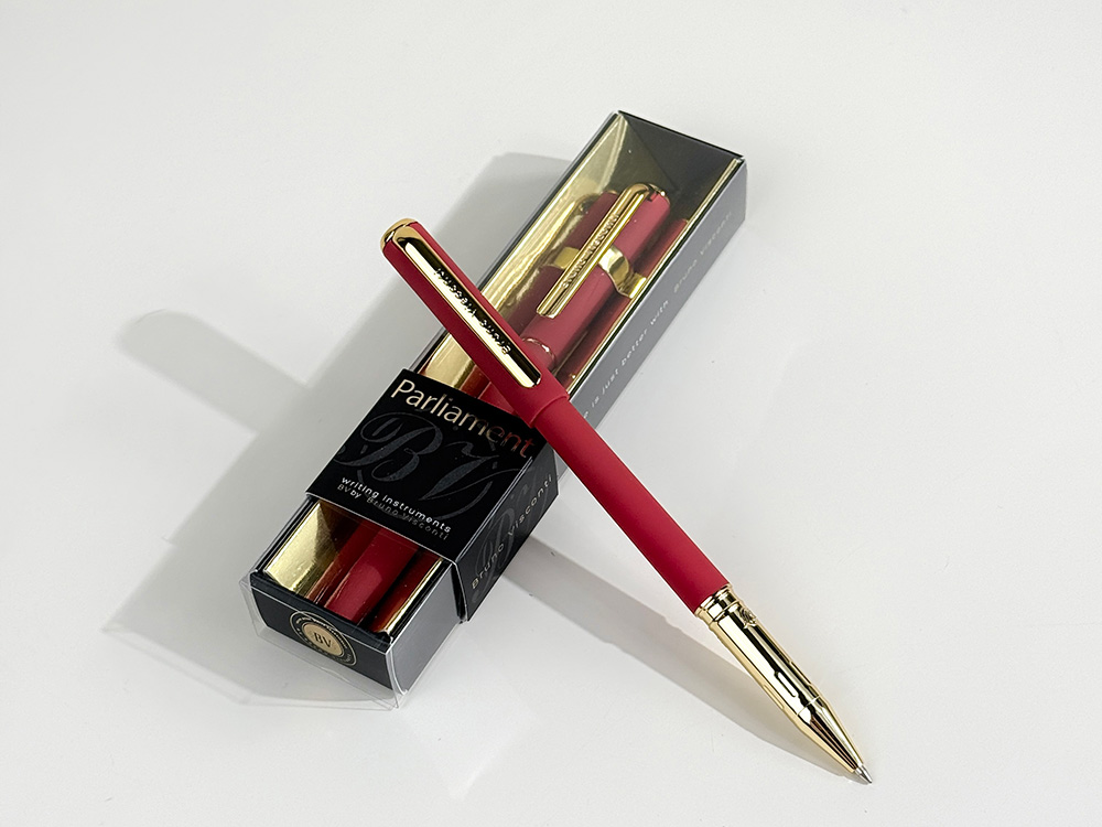 Ручка Parliament с чернилами на масляной основе синего цвета отличается мягким письмом и толщиной линии 0,5 мм. Ее прорезиненный корпус soft-touch обеспечивает комфорт при длительном использовании, а отвинчивающийся наконечник облегчает доступ к сменному стержню. Колпачок с клип-зажимом обеспечивает удобное крепление ручки на одежде или сумке. Качество письма обеспечивается премиальным швейцарским пишущим узлом диаметром 0,7 мм от производителя Premec и немецкими чернилами марки Dokumental. Ручка упакована в индивидуальную подарочную упаковку.