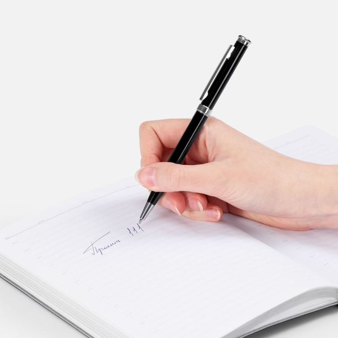 Тонкая классическая ручка — подарок вне времени и моды. Изящное решение для тех, кто ценит совершенство в деталях.Механизм ручки: поворотный.Корпус ручки разбирается, стержень легко заменить.Стержень с синими чернилами.Длина линии письма: 800 м.