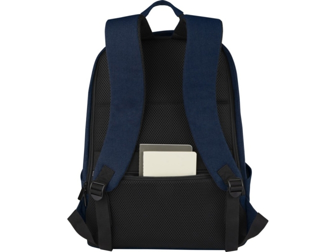 Изготовленный из высокопрочных экологичных материалов, брезента и подкладки из переработанного ПЭТ, соответствующих стандарту GRS, рюкзак с защитой от кражи Joey имеет специальный чехол для планшета и отделение с подкладкой для ноутбука диагональю 15,6 дюймов. Рюкзак также имеет сетчатый карман и внутренние отделения для организации вещей, 2 боковых кармана для воды, один передний карман на молнии и скрытый карман на спине для легкого и безопасного доступа на ходу. Декоративная металлическая пластина может придать логотипу сияние благодаря утонченному матовому покрытию.