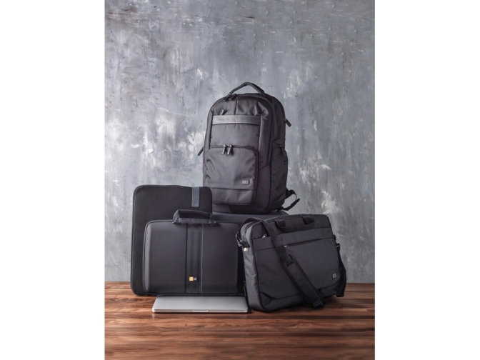 Имеет большое основное отделение на молнии с мягким чехлом для ноутбука 15,6 и планшета 10,1 и сетчатый карман на молнии для кабелей и аксессуаров. Поставляется с передней панелью-органайзером для хранения небольших электронных приборов, кабелей, аксессуаров, визитных карточек и ключей. Имеет расширяемые боковые карманы под бутылку с водой или блок питания, мягкие наплечные ремни, стеганую заднюю панель из сетки, мягкую ручку и рукав для фиксации на выдвижной ручке дорожной сумки. Гарантия от Case Logic: 25 лет.