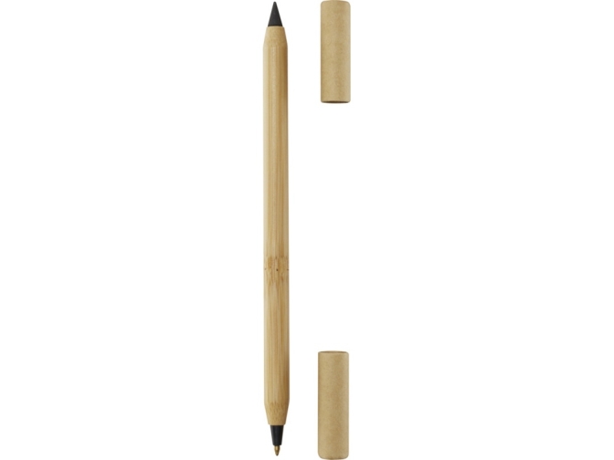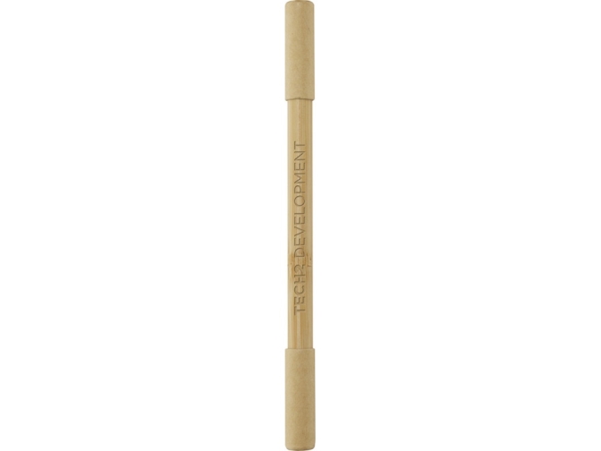 Бамбуковая двойная ручка Samambu имеет две головки: 1 шариковая ручка и 1 бесчернильная ручка. Сторона без чернил не требует чернильных картриджей или заправки. Черный графитовый наконечник ручки предназначен для того, чтобы оставлять видимые следы при контакте с поверхностью для записи. Выбирая ручку, изготовленную из бамбука, вы приобретаете более экологичный продукт и способствуете использованию возобновляемых материалов. Шариковая ручка имеет черные чернила, размер пера 1,00 мм и длину непрерывной линии 600 метров. Длина непрерывной линии бесчернильной ручки: 1500 метров. FSC certified bamboo. FSC 100% N5 CU-COC-877277.