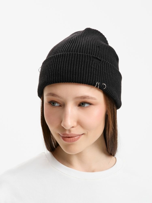 Шапка Ribelle — это практичная двухслойная модель из акрила, которая сочетает уют с современным дизайном. Ее регулируемый отворот с рваным краем и металлическими кольцами в качестве украшений создает выразительный и необычный акцент. Благодаря универсальности и продуманной конструкции она станет стильным и функциональным дополнением гардероба.Поставляется в пакете с липким краем.