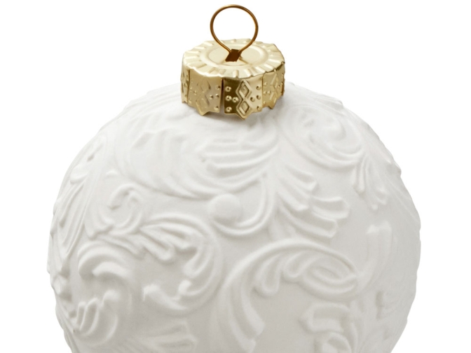 Фарфоровый шар с росписью в технике бисквит. Игрушка ручной работы. Матовая, бархатистая поверхность и пастельные тона создают утонченный образ старинного зимнего праздника. Это воплощение изящества и ностальгии.