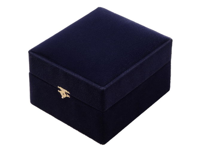 Игрушка упакована в изысканный подарочный футляр, обитый синим бархатом, что подчеркивает её ценность и делает готовым презентом для коллег и партнеров.