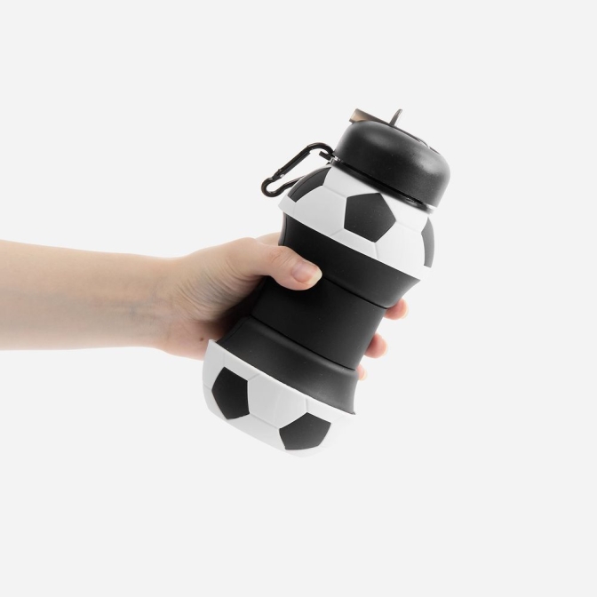 Оригинальная складная бутылка Football Flex будет отличным подарком для футболистов и всех любителей этой игры. Она также понравится спортсменам, школьникам и студентам, любителям туризма и походов — всем, кто ведет активный образ жизни. Бутылку легко закрепить карабином на рюкзак или сумку — и взять на тренировку, в школу, спортзал или даже на море! При складывании ее высота уменьшается вдвое. Подходит для холодных и горячих напитков.Емкость 550 млНанесение выполняется на съемном силиконовом кольце в середине бутылки — в скрытой ее частиОткручивающаяся крышка с откидным носиком поильникомКорпус из пищевого силиконаКарабин для крепления к рюкзакуПодходит для напитков с температурой до 75 °CПоставляется в индивидуальном пакете.