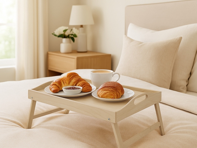 Уют начинается с деталей — и столик-поднос со складными ножками TrayTale точно одна из них. Идеальный аксессуар для завтраков в постель, уютных вечеров на диване или домашних посиделок с книгой и чашкой чая. Продуманный до мелочей: - Складные ножки превращают поднос в устойчивый мини-столик, который легко хранить и удобно переносить; - Удобные ручки по бокам — переносите, не боясь пролить или уронить; - Лёгкий вес и компактный формат делают его максимально практичным в быту; - Размер 500×300×230 мм (в разложенном состоянии) — оптимален для одного-двух человек. Идеально подойдёт как для дома, так и в подарок — вещь, которая точно будет использоваться с удовольствием.
