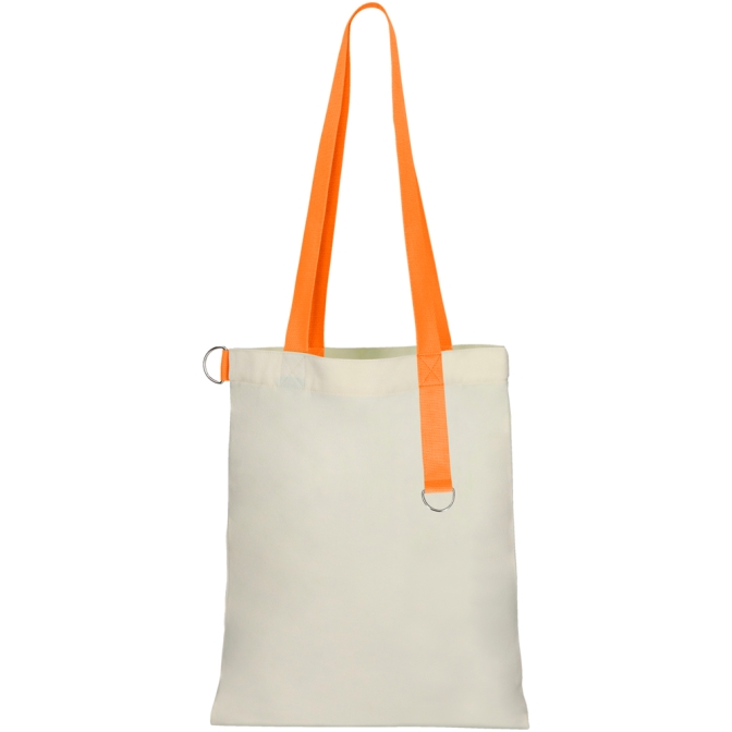 Цвет: Бежевый/ОранжевыйМатериал товара: Переработанный хлопок 30%, переработанный полиэстер 70% (Неокрашенная ткань)Плотность: 325 г/м²Размер товара: 40 х 33 см, ручки: 60 х 3 смВес: 0.145