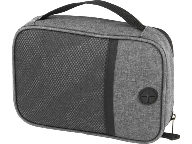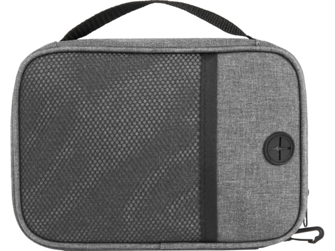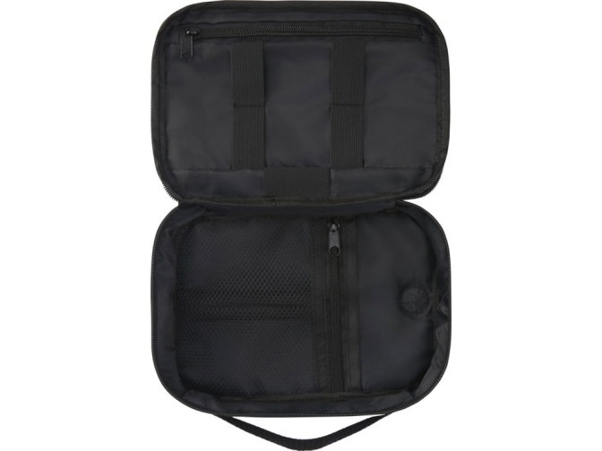 Сумка для техники Ross из переработанного ПЭТ, соответствующего стандарту GRS, идеально подходит для людей, постоянно находящихся в пути, и позволяет организовывать портативные зарядные устройства, зарядные кабели или любые другие электронные аксессуары. Имеет несколько карманов, эластичных петель и вставок для протягивания кабелей, позволяющих заряжать телефон, храня портативное зарядное устройство в сумке. Также имеет пластиковый карабин для крепления к другой сумке. Емкость: 1 литров. 300DGRS certified recycled polyester.