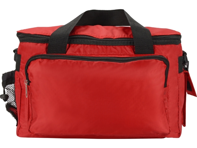 Вместительная сумка-холодильник (объем – 15 л.) Камайоре прекрасно подойдет не только для индивидуальных пикников, но даже и для доставки горячих продуктов (пиццы, например). Чехол сделан из полиэстера, на него может быть нанесена персонализация: имя владельца или логотип компании.