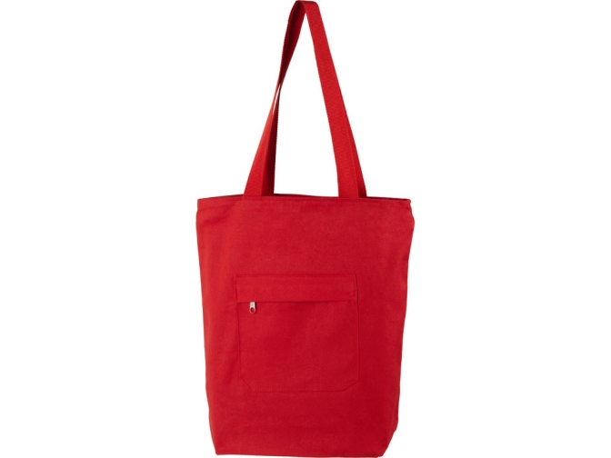 Преимущество этой сумки в наличии застежки молнии на основном отделении - ее содержимое остается закрытым. Донная складка увеличивает вместимость. Снаружи расположен карман на молнии. Парусиновые ручки в тон сумки.