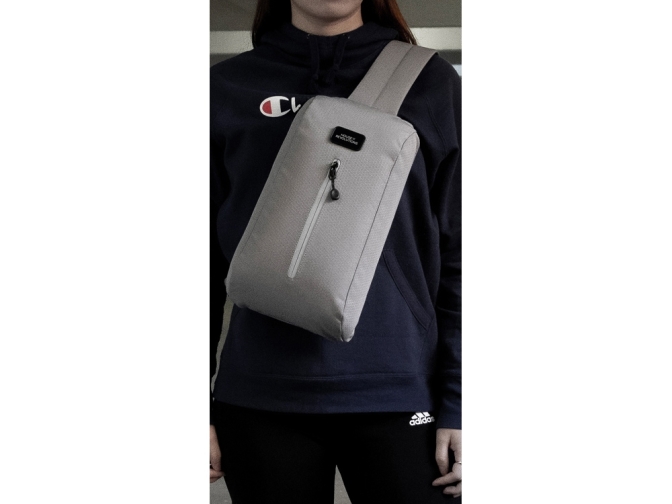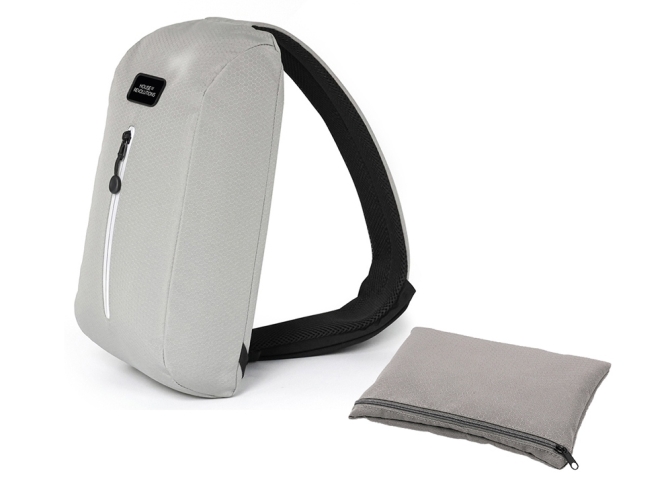 Легкая и удобная сумка-слинг на одно плечо незаменима для передвижения по городу или в поездках. Выполнена из водостойкого и долговечного переработанного полиэстера с покрытием от загрязнения. Складывается во внутренний карман и компактно хранится. - антикражная молния основного отделения, размещенная под защитной планкой из ткани - эластичный карман на лямке для бутылок или телефона - спереди светоотражающий элемент на молнии для большей безопасности в темное время суток - варианты ношения спереди и сзади - возможность крепления лямки слева и справа - дышащая сетка на лямке - лямка регулируется по длине - компактно складывается во внутренний карман Комплектуется 2мя съемными шильдами под нанесение вашего логотипа - металлическим и из эко кожи.