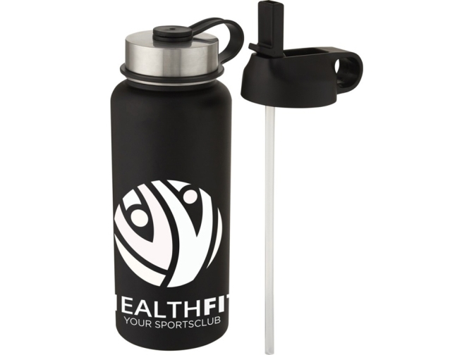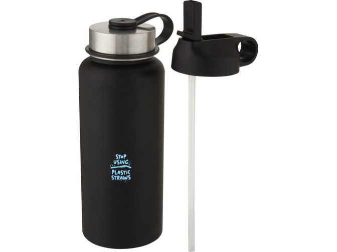 Спортивная бутылка два в одном из нержавеющей стали с двойными стенками, вакуумной медной изоляцией и двумя крышками: одна крышка с трубочкой для удобного питья и одна герметичная навинчивающаяся крышка с петлей для переноски. Изолированная конструкция из нержавеющей стали 18/8 предотвращает образование конденсата на наружной стороне бутылки, а современное порошковое покрытие обеспечивает чрезвычайную прочность. Широко открывающаяся горловина для удобного наполнения, разливания и мытья. Не содержит БФА, испытана и одобрена в соответствии с немецким законодательством о безопасности пищевых продуктов (LFGB). Проверена на содержание фталатов и одобрена для использования в соответствии с правилами REACH. Идеально подходит для кубиков льда. Объем: 1 литра. Рекомендуется мыть вручную. В подарочной коробке из переработанного картона.