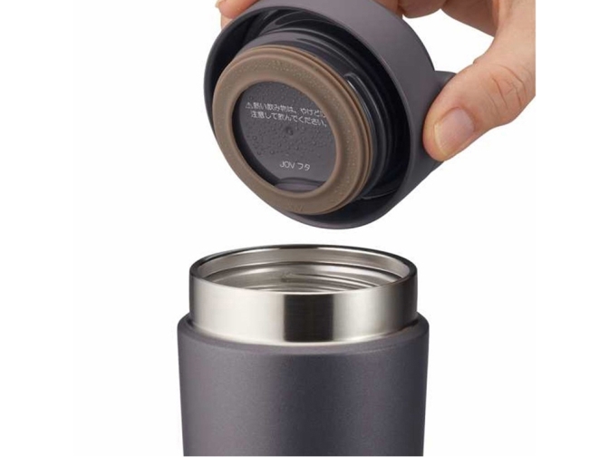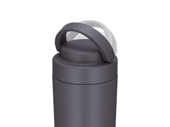 Теплосбережению способствует крышка-пробка, которая легко и быстро открывается и закрывается. Чтобы термостакан было удобно носить в руке или прикрепить к сумке или рюкзаку, предусмотрена прочная ручка с надёжным креплением к крышке-пробке. Ручка поворачивается в обе стороны и в сложенном положении интегрируется в плоскость крышки.