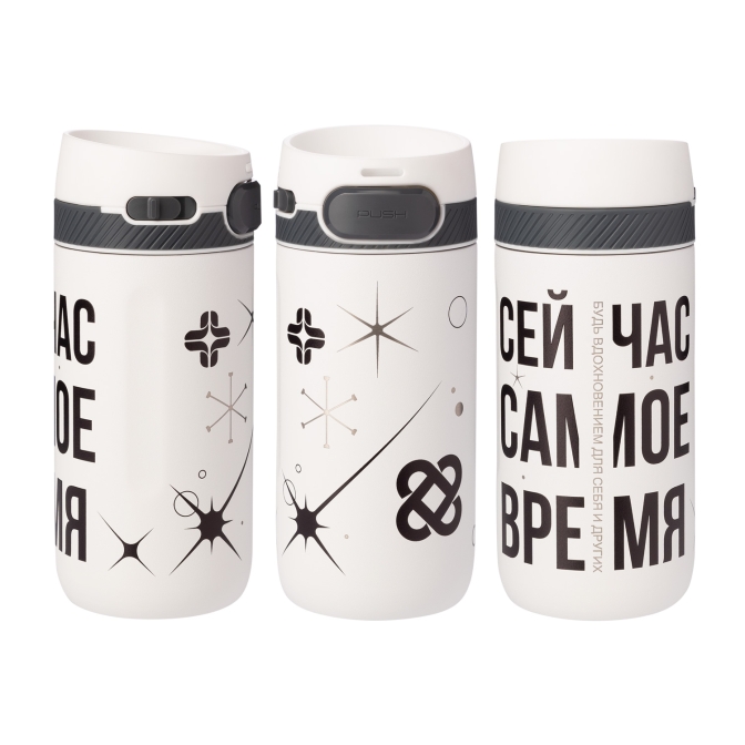 ХарактеристикиПорошковое покрытие корпусаКрышка BPA free - пластикСталь 304 марки внутри, 201 сталь снаружиОбъем 415 млЛитой корпусСистема One hand openГерметичностьРазмеры без упаковки: 76 x 75 x 175 ммРазмеры в упаковке: 80 x 80 x 185 ммРекомендации по использованию:Перед первым использованием тщательно вымойте изделие горячей водой с моющим средством, хорошо сполосните и вытрите насухо, чтобы избежать на поверхности появления пятен от воды.Для лучшего сохранения температур напитков рекомендуем перед использованием наполнить изделие горячей водой (перед использованием с горячими напитками) или холодной водой (перед использованием с охлажденными напитками).Рекомендуем мыть термокружку вручную. Агрессивные моющие средства, используемые в посудомоечных машинах способны повредить лакокрасочное покрытие.Шкала температуры:Размеры товара: